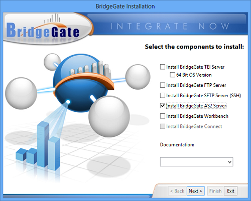 Select the BridgeGate™ AS2 Server checkbox and click Next. The AS2 Server installation screen will appear. When complete, you will see the following messages: